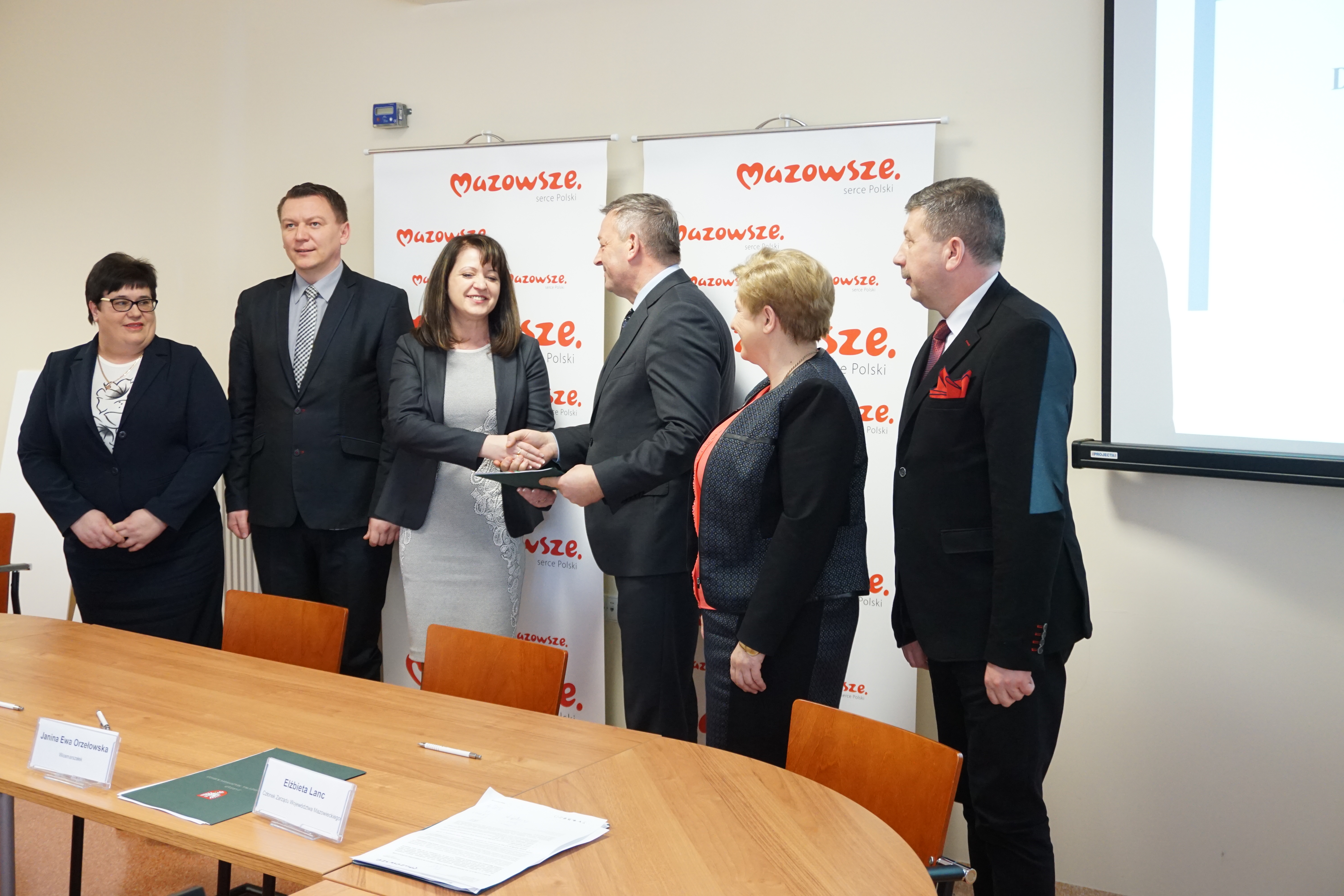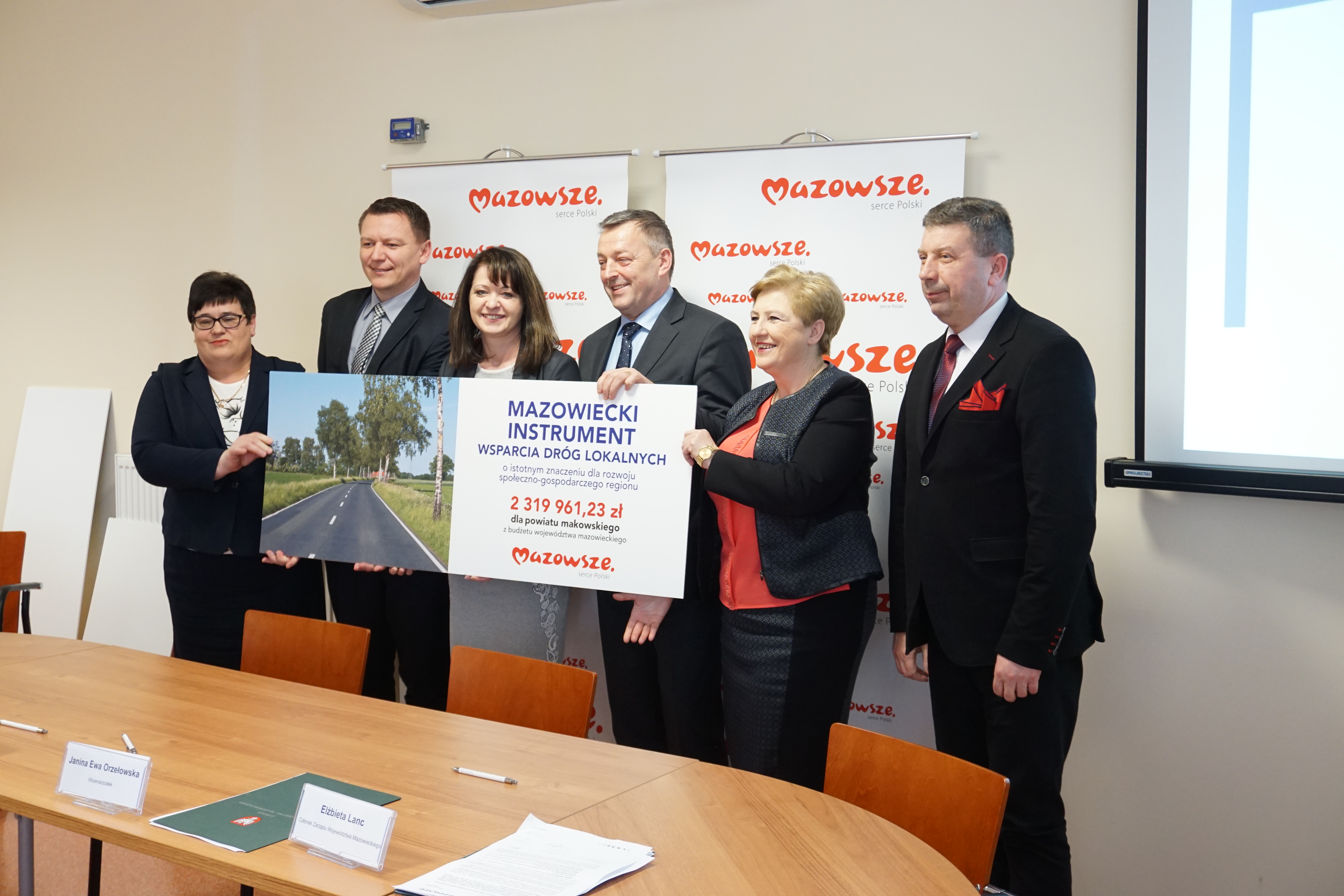 Środa, 7 lutego była ważnym dniem dla infrastruktury drogowej w powiecie makowskim. W Urzędzie Marszałkowskim Województwa Mazowieckiego Delegatura w Ostrołęce podpisano stosowne dokumenty o przyznaniu dofinansowania Powiatowi Makowskiemu z budżetu województwa kwoty 2.319.961 zł na przebudowę drogi powiatowej Przasnysz – Baranowo. Całkowita wartość zadania wyniesie 3.866.602 zł, wkład własny powiatu 1.546.640 zł. Umowę podpisała wicemarszałek Janina Ewa Orzełowska, członek Zarządu Województwa Mazowieckiego Elżbieta Lanc, starosta makowski Zbigniew Deptuła, wicestarosta Dariusz Wierzbicki, skarbnik powiatu Irena Grabowska.